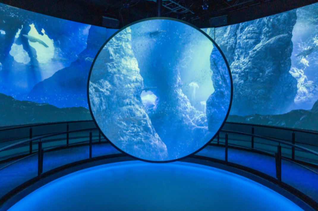 第一個展間以經典西部電影元素為靈感,透過動畫影像搶先揭示旅程中將飛越的地標與景致;第二個展間則將觀眾帶回古老時代,透過震撼的 360 度環景影像探索美國西部的地質演化、遠古海洋歷史與文化背景。藉由視覺、聲音與情感的多重引導,觀眾在踏上飛行前就能充分沉浸於故事與風景之中。