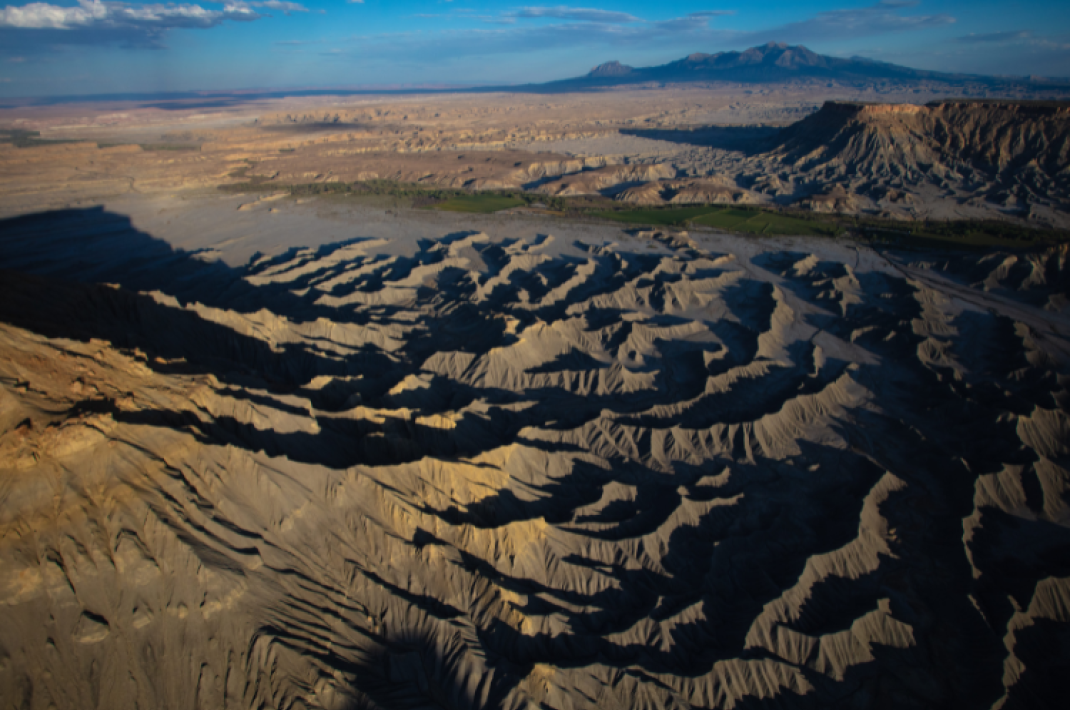 The second preshow room immerses guests in the geological history of the region, showcasing ancient seas and the cultural history of the American West through stunning 360-degree visuals.
