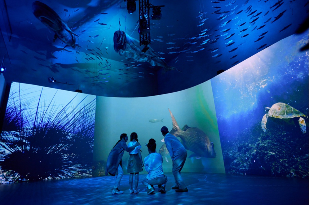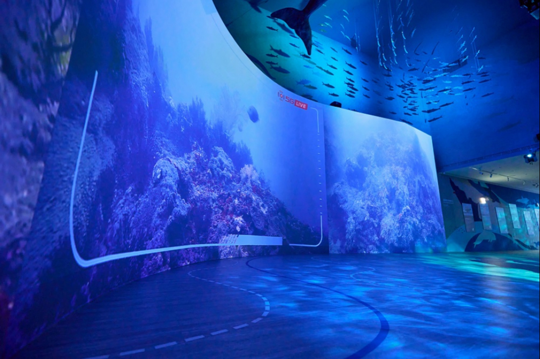 - 「潮境之宾」巨幕迎宾区:结合5G传输技术将海科馆所复育的海底美景即时呈现